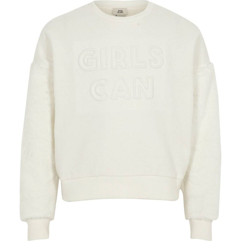 This girls can logo sweat with faux fur sleeves is lovely and inspiring at the same time. £18.