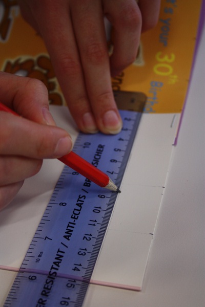 Mark the castle top features, using a pencil and a ruler. In my project, I made the battlements 3.5 cm wide and 2.5 cm long. However, these measures can vary, depending on the size of your castle and your personal taste. Once you’ve done this, cut along the outline you’ve drawn.