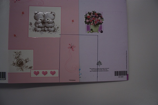 Pick four cards of the same size (or cut them out) and staple them together, as shown in the picture below.