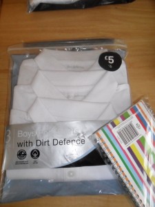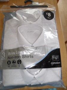 Those lovely people at clothing at Tesco who try hard to understand mums on a budget kindly sent me a uniform pack. The first fabulous thing I noticed was that the polo shirts say dirt defence on them…oh I can’t wait to try that out. My son often looks like that little boy from Snoopy (was it PigPen) who is covered in dirt as soon as he sniffs it! Apparently dirt defence helps prevent soiling and increases stain removal during washing. I usually avoid buying own brand polo school shirts as my past tries have all stained so quickly . Dirt defence is a FAB concept. These are 3 for £5.The long sleeved shirts also contain this and are NO IRON Oh it gets bertter! these retail at 3 for £8.
