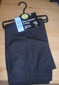 The trousers are again dirt defence no iron items – HURRAY! And are excellent value at 2 pairs for £5. The little girls school skirts are pleated (but still no iron!) and stretchy and shower resistant ( 2 for £8) .