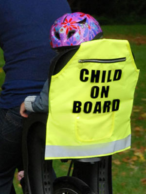 Letting people know you have a child on board is important to most parents…particularly on a bike where they can be so vulnerable. This high visibility seat cover from Vizz kids is an excellent safety idea . It is for rear mounted child cycle seats to enhamce visibility day or night, It has a:
